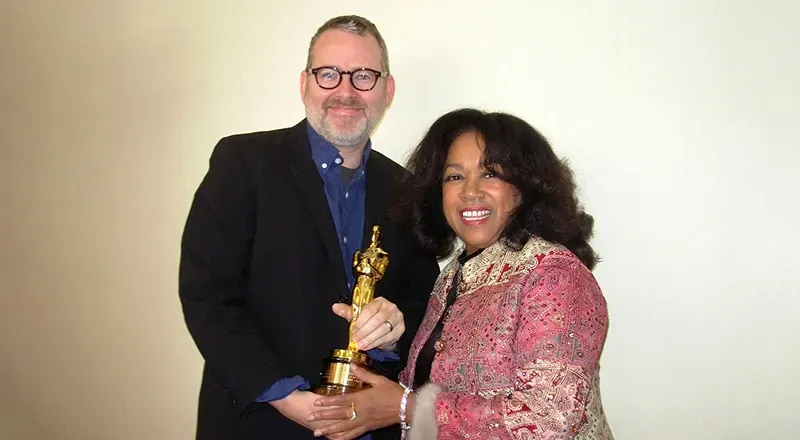 Susaye with Director Morgan Neville (and dear Oscar) for 20 Feet From Stardom, which won Best Feature Documentary.